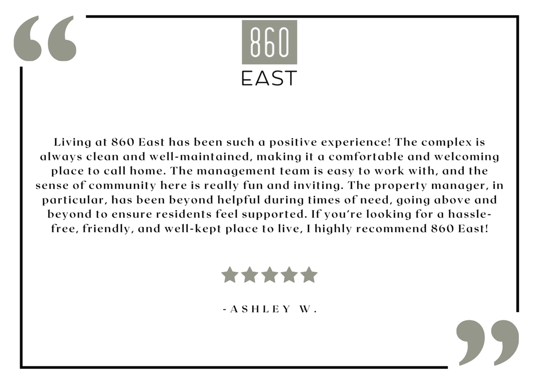 Schedule your tour today and see why 860 East is where convenience, comfort, and connection come together.